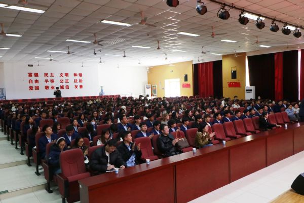 于钦良老师在讲到“立美”时,他满目春风的讲述更加感染了在场师生,这时大屏幕也展示出各种美景图画,叫人赏心悦目。于老师引述到“满载一船星辉,在星辉斑斓里放歌……”接着,学生工作处副处长王文静老师受邀走上台,朗诵徐志摩的名作《再别康桥》,现场于悠扬诵读声中体悟诗歌意境与教育之美的深层共鸣。