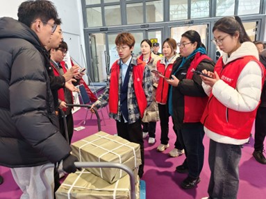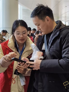 在面向参展商与观众的调研工作中,我们的志愿者们始终以十足的耐心与真诚的服务态度,细致地做好讲解与引导服务。特别是在前往展馆调研参展商时,同学们不辞辛劳,用小推车满载着一箱箱厚重的会刊,穿梭于展馆之间,始终面带微笑,为每一位参展商提供无微不至的服务。大二同学更是以身作则,悉心指导大一同学,强调要以积极的态度与专业的服务精神面对每一项任务。这种敬业与奉献的精神,为展会增添了温度,也赢得了参展商与观众的一致赞许。