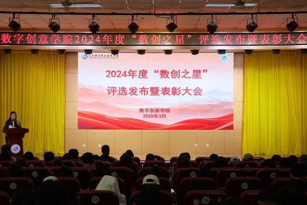3月31日下午,数字创意学院在学术报告厅举办2024年度“数创之星”评选发布暨表彰大会。数字创意学院党总支书记岳卫华、院长王一如、团总支书记李猛、各辅导员及2023、2024级学生代表参加大会。