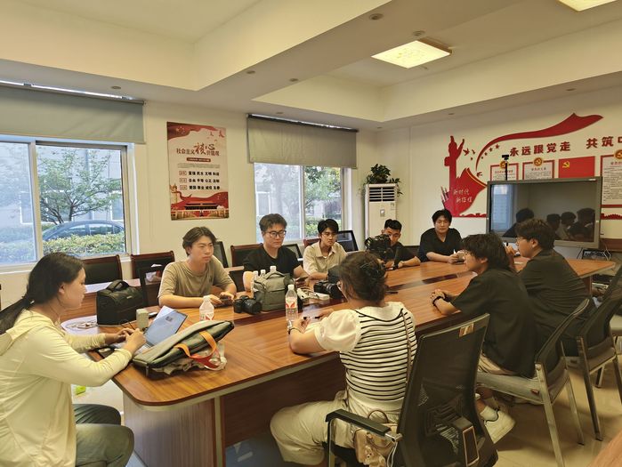 “乡兴影像”服务队与张汪镇政府工作人员、当地文化工作者开展交流研讨。会上,李猛介绍了学院的专业设置、人才培养特色,以及近年来学院在社会实践和志愿服务领域取得的成果;随后,程新宇结合 “乡兴影像” 服务队的专业构成、实践目标及具体服务内容进行详细说明。参会双方围绕乡村文化资源挖掘、艺术赋能乡村建设等议题展开交流研讨,一致希望以此次合作为契机,深化校镇联动,为学生搭建更广阔的实践平台。服务队代表结合专业所学,分享了利用影像记录乡村文化、打造特色文旅宣传片的创意方案,从镜头语言运用到叙事逻辑构思,展现出专业视角与创新思维。