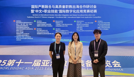 9 月 17 日至 19 日,亚洲职业技术教育与培训研讨会指教板块主论坛在杭州大会展中心召开。数字媒体系系主任王一如、骨干教师赵莹参会,深度参与国际产教融合与高质量指教出海合作交流,为学校职业教育国际化与数字化发展注入新动能。
