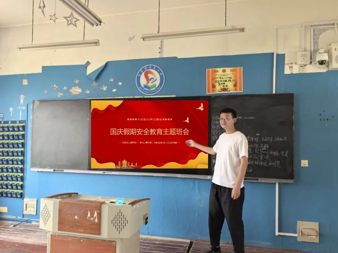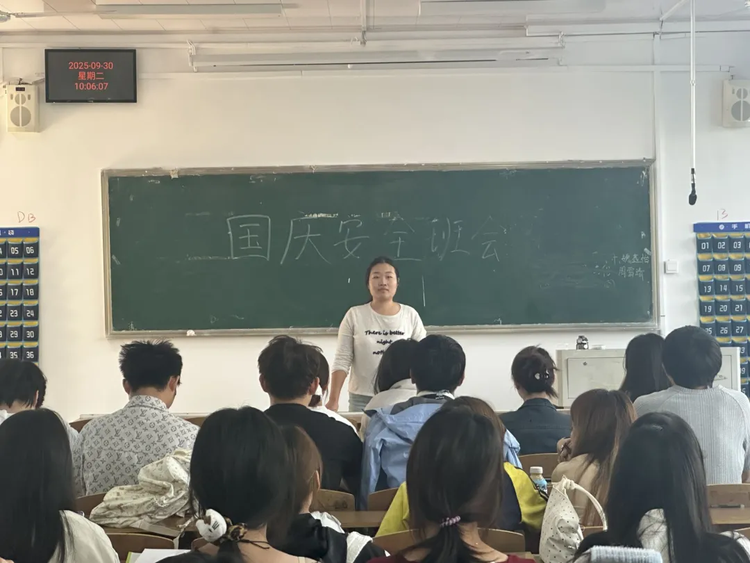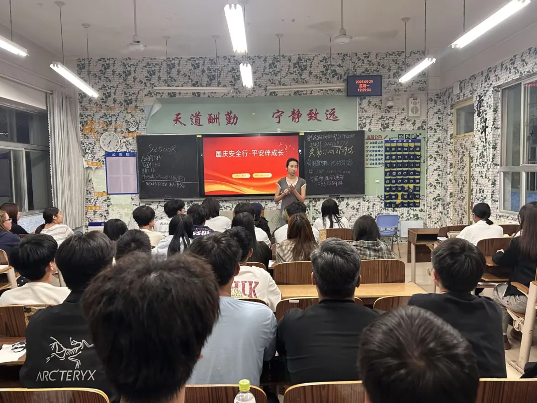 付雯铮老师针对国庆出行高峰,明确要求学生选择公共汽车、火车等正规交通工具,拒乘 “黑车”;骑乘非机动车需戴安全头盔、遵守交规,步行不边走路边看手机,遇事故及时报警。