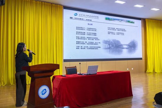授课结束后,于钦良邀请辅导员边慧潇现场朗诵《再别康桥》,并围绕“情感流露贴合文本意境”进行点评。悠扬诵读中,师生共同感受诗歌与教育的人文之美,引发对“成长与告别”“理想与坚守”的共鸣,为讲座增添浓厚人文色彩。