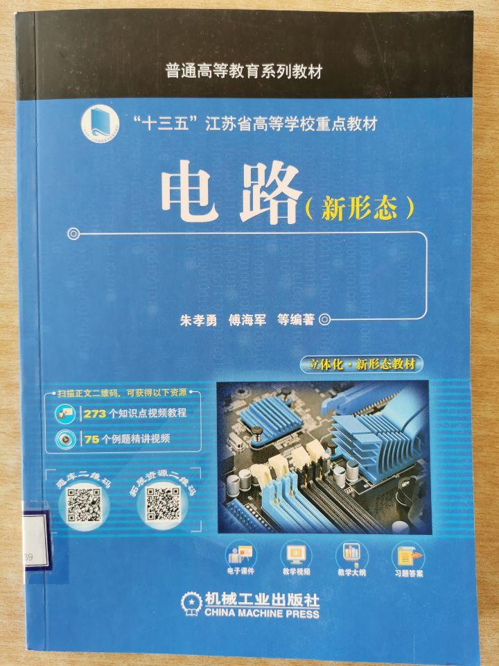 内容简介:本书为“十三五”江苏省高等学校重点教材。本书是根据教育部高等学校电子电气基础课程教学指导分委员会制定的《“电路理论基础”课程教学基本要求(修订稿)》,充分考虑各院校新的教学计划及电路理论自身特点,为电子信息与电气工程类专业学生编写的教材。本书内容包括:电路基本概念和电路定律、电阻电路的等效变换、电阻电路的分析方法、电路定理、动态电路的时域分析、正弦稳态电路分析、谐振电路、互感电路、三相电路、非正弦周期电流电路、动态电路的复频域分析、电路方程的矩阵形式、二端口网络等。本书基本概念讲解清晰,易于读者理解;基本分析方法归类恰当、思路清晰、步骤明确,易于读者掌握。为了便于读者随时随地学习“电路”课程,书中配有丰富的例题等视频资源,以帮助读者理解电路理论的主要概念、基本理论和基本方法,促进读者对电路理论的掌握。