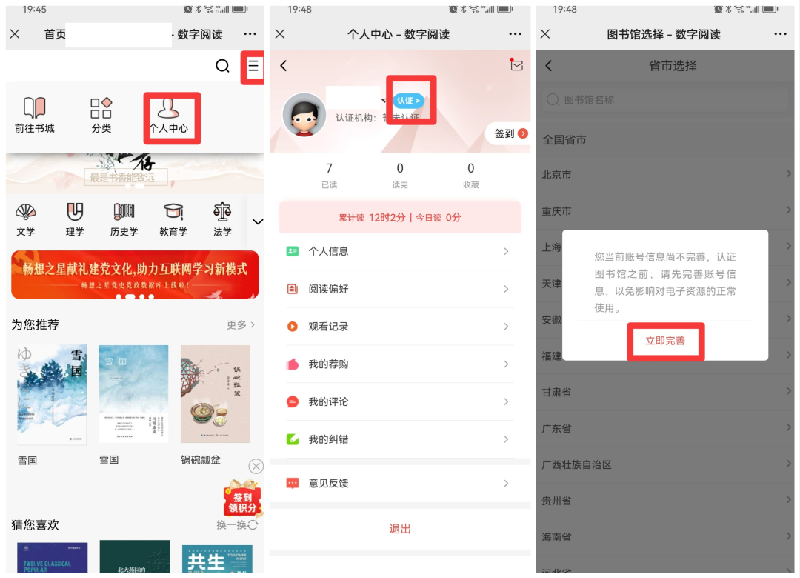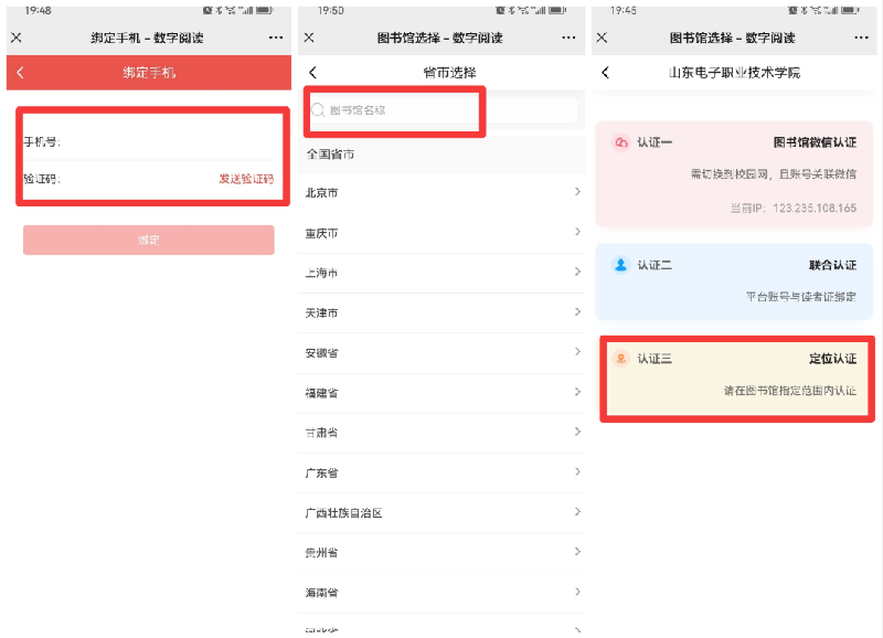 2、新用户需进入个人中心→认证→完善信息绑定手机号→选择山东电子职业技学院→认证三定位认证