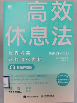 书名:《高效休息法:世界精英这样放松大脑:音频体验版》 作者:(日)久贺谷亮著 出版社:人民邮电出版社 索书号: R161/1166 馆藏地点:综合书库 内容简介:“虽然什么都没做,但总觉得很累……”“即使周-末好好睡一觉,周一早上起来还是会感到身心疲惫……”“注意力没有以前集中,很快心……”大脑疲劳和身体疲劳有着根本性的差异,即使发呆,怠速运转的大脑仍然会消耗掉60%~80%的大脑能量,使得大脑疲劳在不知不觉中不断累积。一旦慢性化持续下去,各方面的表现将越来越差,可能会导致焦虑、抑郁等心理疾病。《高效休息法 世界精英这样放松大脑 音频体验版》以“消除大脑疲劳的七个休息法”为基础,通过更具实践性的音频,针对现代人常见的,如昏昏沉沉、心事重重、身体状态不佳、陷入思考怪圈、被愤怒冲昏头脑等不同情境提供专业指导。每天只需10分钟,可以使人头脑清醒,获得持续的动力与干劲。