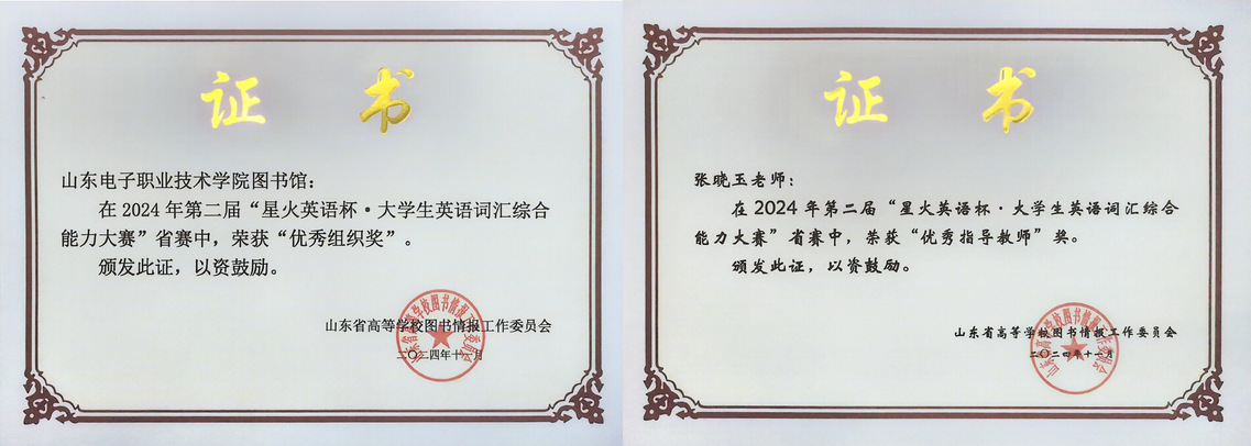 2024年11月6日,由山东省高等学校图书情报工作委员会主办的第二届“星火杯·大学生英语词汇综合能力大赛”圆满落下帷幕,本次大赛共吸引了省内94所高校的20017名选手参与,为大学生提供了一个展示英语词汇综合能力的高水平竞技平台。