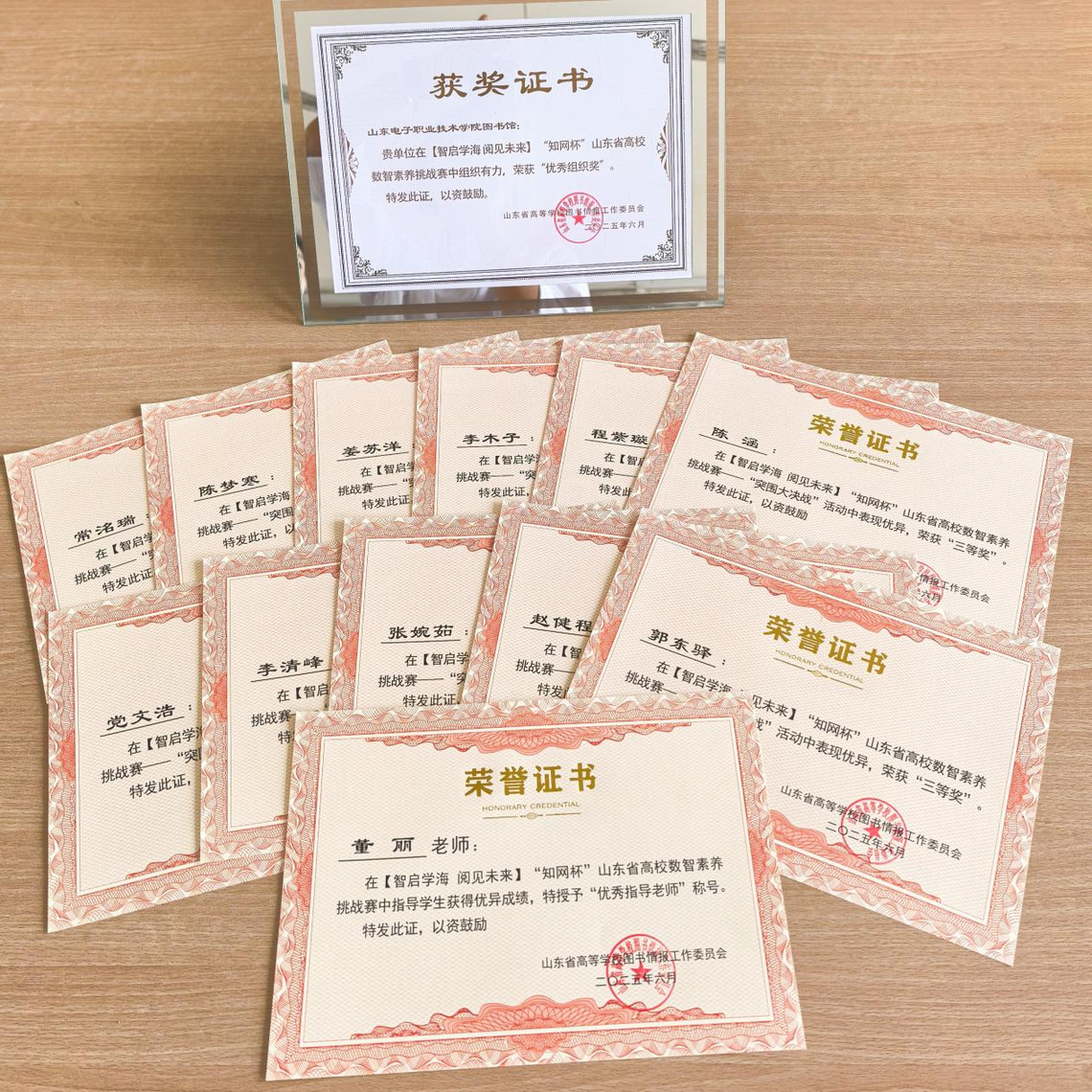 近日,由山东省高等学校图书情报工作委员会主办的“知网杯”山东省高校数智素养挑战赛落幕。本次大赛以“智启学海 阅见未来”为主题,共吸引123所院校(含省内115所高校)的14105名师生参与。比赛设置本科组和高职高专组,分别评出一等奖5名、二等奖15名、三等奖50名,并颁发优秀组织奖10个、优秀指导老师10名。