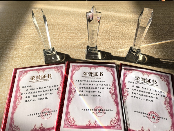 近日,由山东省高等学校图书情报工作委员会主办的第三届“星火杯·大学生英语综合能力大赛”顺利落幕。学校图书馆荣获“优秀组织奖”,图书馆刘婷老师获“优秀组织馆员奖”,基础教学部肖岚老师获“优秀指导教师奖”。