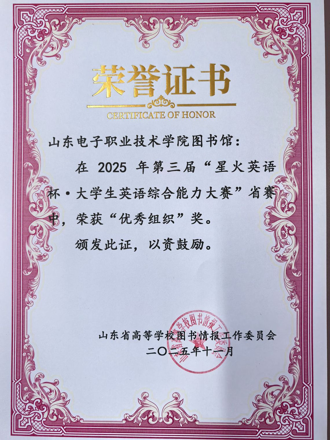 第三届“星火杯·大学生英语综合能力大赛”优秀组织奖