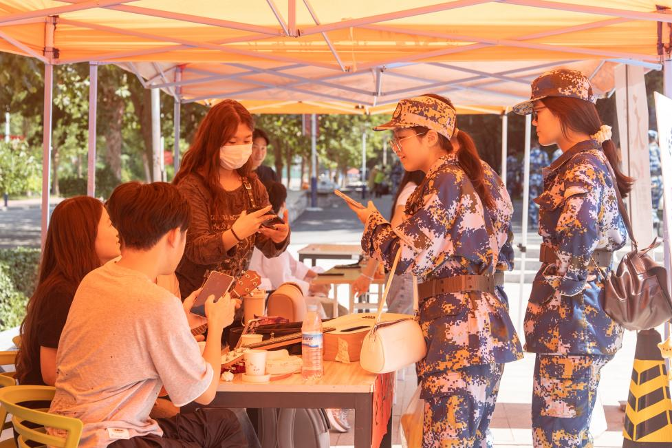 此外,现场还有无人机应用讲解、遥控智能小车操作、点钞演示、沙盘模拟、电商直播等特色活动,吸引了大批同学的关注。同学们纷纷拿起手机扫描社团二维码,加入社团“大家庭”,开启丰富多彩的社团生活。学术科技类社团的同学们展示了他们的科技创新成果,无人机飞行表演、智能机器人展示等吸引了众多学生的目光。