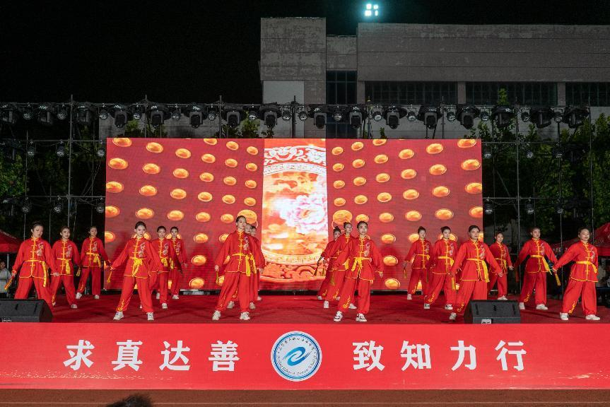 首先登场的是学校大学生艺术团义林舞狮队带来的舞狮表演。舞狮,作为中华文化中充满活力与魅力的传统艺术,象征着勇敢和繁荣。那灵动的狮子在舞台上跳跃、翻滚,每一个动作都充满力量,仿佛在诉说着中华民族的坚韧与不屈。狮子的眼睛炯炯有神,毛发在灯光下熠熠生辉,精彩的表演赢得了观众们的阵阵喝彩,为晚会奠定了热烈而激昂的基调。