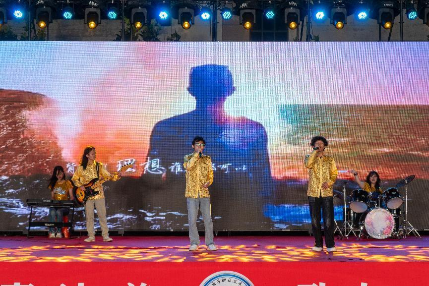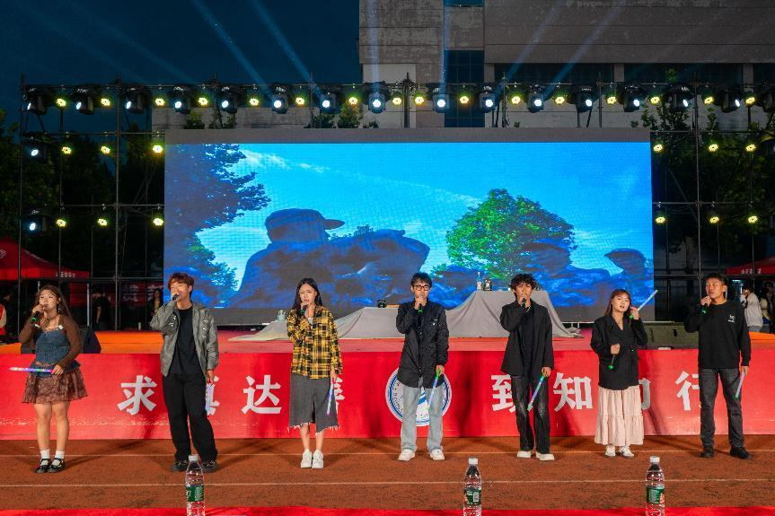 数字商务学院和学校大学生艺术团器乐队一同带来了《岁月金曲回响》。在时光的长河里,那些经典老歌如璀璨的明珠,散发着永恒的魅力。《不再犹豫》的旋律响起,仿佛在激励着人们勇敢地追逐梦想,不畏艰难险阻。而当《海阔天空》的前奏奏响,全场瞬间沸腾。这首歌积极展现了大学生应有的青春活力,那激昂的旋律、励志的歌词,触动着每一个人的心弦。大一新生们手持荧光棒和手机手电筒,随着音乐的节奏轻轻摇摆,合唱的场面宛如一场盛大的演唱会。在这歌声中,我们感受到了青春的激情与梦想的力量。