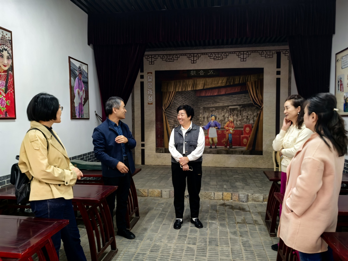 在青野村五音戏国家非遗传承基地,一行人参观了五音戏博物馆,详细了解了五音戏的历史渊源、艺术特色及传承现状。随后,与五音戏第六、七代传承人进行了交流,就如何将非遗文化融入学生基础课程学习、如何发挥非遗传承人在学生成长中的积极作用等问题进行了深入探讨,期望在未来的合作中,能够共同推动五音戏这一非物质文化遗产的传承与发展。