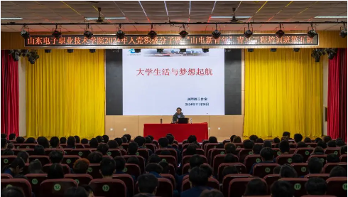 11月28日晚,2024年入党积极分子暨“山电新青年”青马工程培训班第五讲在学术报告厅进行,思想政治课教学部主任张同胜授课,组织人事处、团委相关人员、各学院负责共青团工作的老师、全体青马学员参加。