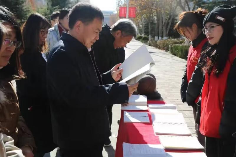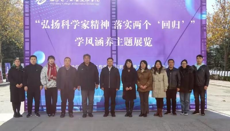 党的二十大报告强调,培育创新文化,弘扬科学家精神,涵养优良学风,营造创新氛围。2023年11月30日,“弘扬科学家精神落实两个‘回归’”学风涵养主题展览在山东电子职业技术学院综合楼南侧主干道正式展出,学校党委书记毕丛福、院长张建臣莅临现场与师生一同观展。本次展览由学生工作处、计算机与软件工程系及科研中心主办,“e念思计”学风涵养工作室和“e路先锋”辅导员工作室承办,以弘扬科学家精神为指引,深入落实我校“教师回归课堂,学生回归教室”的双回归精神,引导我校学子树立科技报国志,刻苦学习钻研,勇攀科学高峰,涵养山电优良学风。展览共设置科学家精神、学风建设成果、优秀教案、最美笔记和学习用品交流互助五个展区。