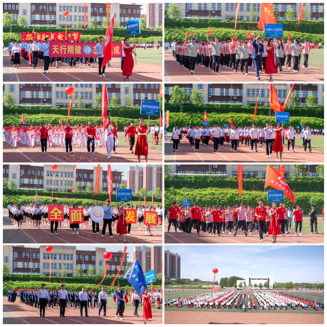 在激昂的运动员进行曲中,国旗护卫队、花束队以及12支教职工代表队、7个二级学院学生代表队迈着整齐的步伐,以昂扬向上的姿态依次通过主席台,充分展现了山电师生团结奋进、积极拼搏的精神风貌。