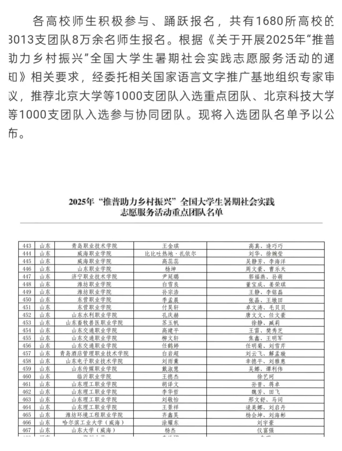 近日,教育部语言文字应用管理司、共青团中央青年发展部公布《2025年“推普助力乡村振兴”全国大学生暑期社会实践志愿服务活动入选团队名单》,我校“智启青春”推普服务队成功入选2025年“推普助力乡村振兴”全国大学生暑期社会实践志愿服务活动重点团队。