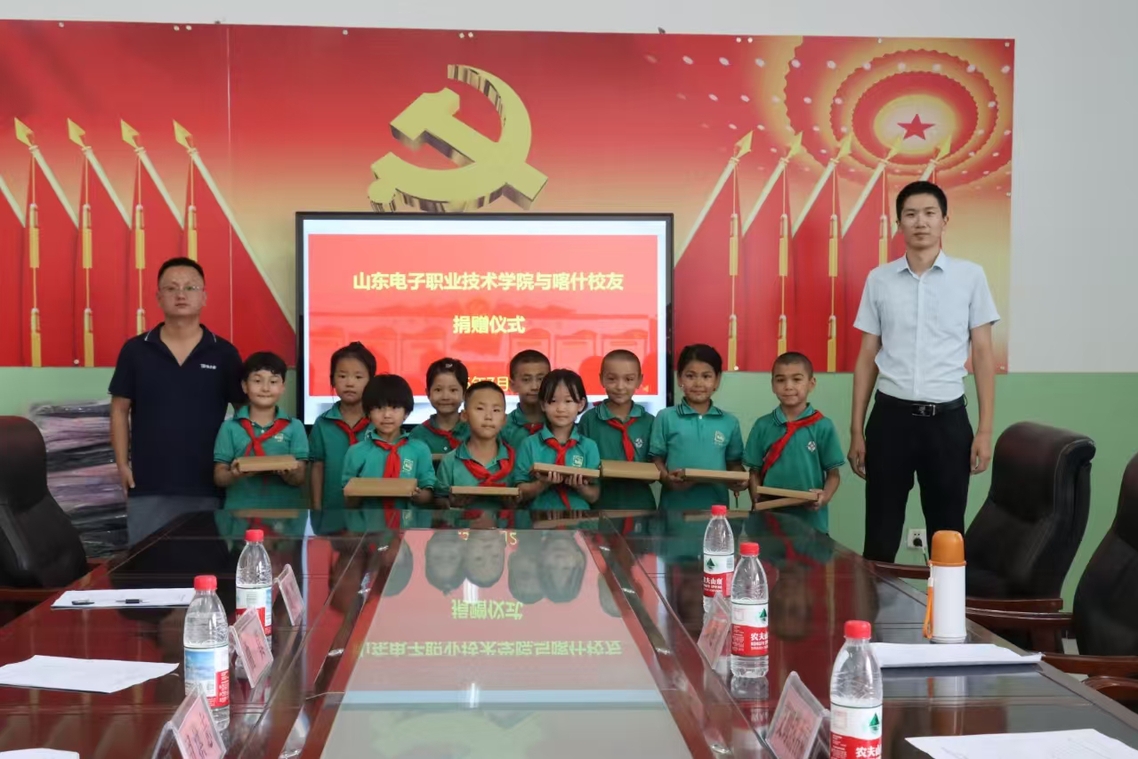 调研结束后,李卫东与山东援疆指挥部干部人才组项目主任牛军、青岛大学团委志愿者工作部部长徐国辉、英吉沙镇常务副镇长司洪志一同前往英吉沙县实验小学,亲切慰问学校鲁喀专项志愿支教团队师生,鼓励全体团队成员继续提升专业素养,为助力民族大团结贡献青春力量。此外,学校还向英吉沙县实验小学捐赠了文体用品,举办了山东电子职业技术学院驻喀校友座谈会,进一步凝聚校地合作共识。