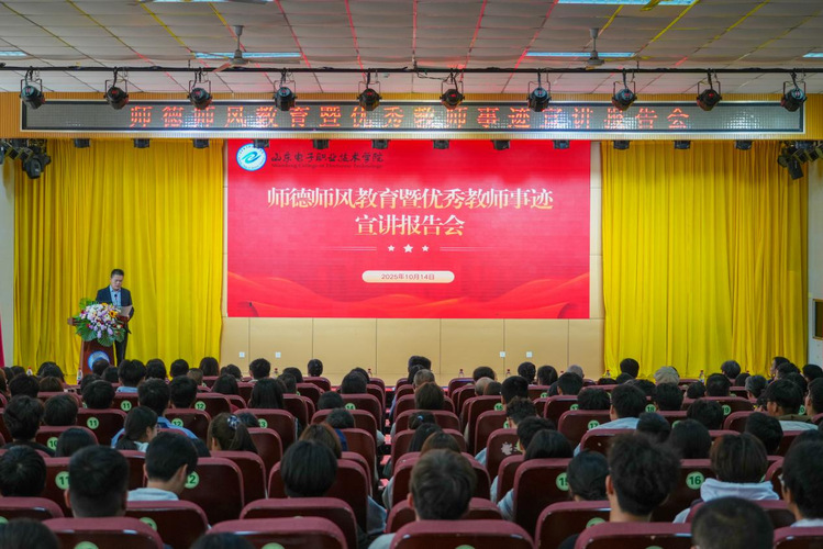 为大力弘扬教育家精神,贯彻落实立德树人根本任务,全面营造“立师德、正师风、强师能”的良好校园氛围,激励广大教职工坚守教育初心、以德立身育人,10月14日,我校在学术报告厅举行师德师风教育暨优秀教师事迹宣讲报告会。学校党委书记毕丛福,党委委员、宣传统战部部长聂莺出席活动,学生工作处、团委、各系党团总支负责人和350余名师生代表参加活动,报告会由工会主席齐学民主持。