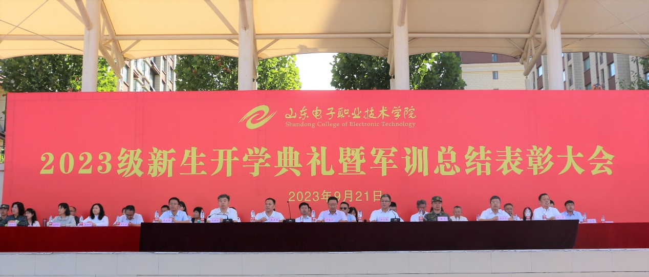 九月金风盛,启航新征程。9月21日上午,山东电子职业技术学院2023级新生开学典礼暨军训总结表彰大会在体育场举行。山东省工业和信息化厅二级巡视员丁寄方,党委书记毕丛福、院长张建臣等学校领导班子成员,武警济南支队参谋张昊,各系部、各部门负责人以及教师代表、2023级全体新生、新生家长代表参加大会。大会由毕丛福主持。