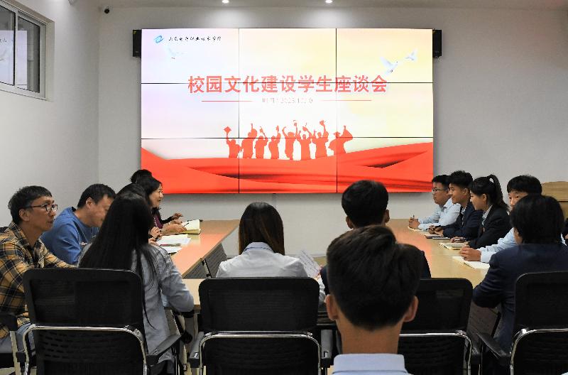 座谈会由宣传统战部部长聂莺主持,她向参与人员说明了组织这次座谈会的目的和意义。学生是学校教育教学的主体,是监督评价的主体,更是权利主体,团学骨干作为学生中的优秀分子,更应该提高参政议政意识,发挥主观能动性,组织校园文化建设学生座谈会,就是希望学生干部能代表广大同学为学校文化建设,为学校高质量发展贡献智慧、贡献力量。