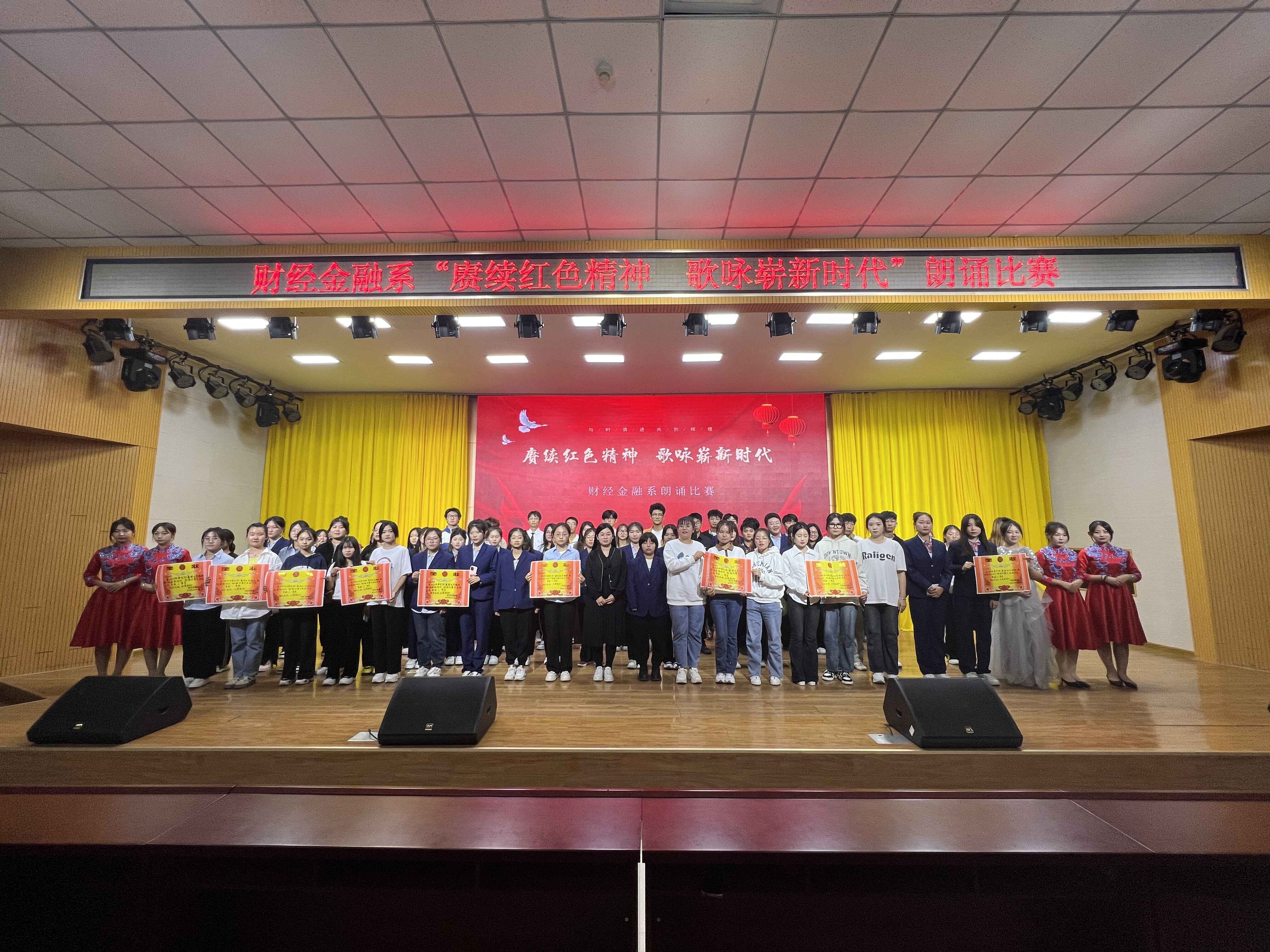 为重温红色经典,发扬爱国主义精神,激发青年学子爱党、爱祖国、爱社会的热情,进一步激发全体同学的爱国情怀,11月1日,财经金融系在学术报告厅举办了“赓续红色精神,歌咏崭新时代”朗诵比赛,辅导员老师及团总支学生会干部出席并担任评委,20支队伍参赛。