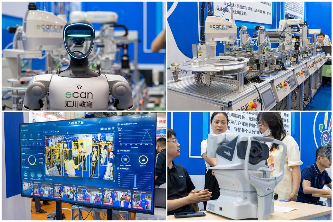 人工智能典型应用工业场景、多模态大模型具身智能展示,以及语音识别、图像识别等人工智能核心技术设备,吸引了大量市民前来体验。天工机器人、宇树机器人成为展区焦点,承担了“迎宾”工作。“香韵之旅”自动化香水灌装生产线,真实呈现自动控制、集成电路等专业相关工种的作业流程。人机对弈机器手臂、AI虚拟体验、智能化停车场、眼视光智能检测仪等展品覆盖多场景AI技术应用。山东电子职业技术学院与校友企业联合研发升级的激光雕刻机前,小学生们排起“长龙”,都想获得一张定制版职教周金属纪念卡。中兴通讯的智海AI教育一体机,作为教育部首批“人工智能+高等教育”示范平台,提供“课程+平台+算力”一站式解决方案,有效解决院校师资、资源、课程、平台短缺的难题。