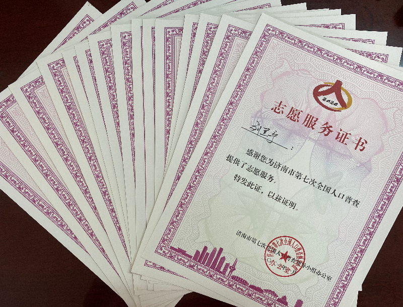 在数字媒体系党员示范岗辅导员刘兰宁的带领下,共计14名青年志愿者利用休息时间,深入社区,入户摸底普查申报,为推进普查工作有序稳步前进贡献青春力量。日前,本次参与志愿服务的青年学生收到由济南市第七次全国人口普查领导小组办公室颁发的《志愿服务证书》,收获一份精神上的鼓励和认可。