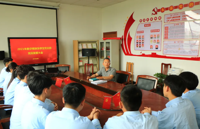 为全面做好党员发展工作,2021年6月24日,数字媒体系学生党支部召开党员发展大会,学生党支部书记颜培园、学生党支部全体党员以及本次新发展的10名同志参加会议,会议由刘兰宁同志主持。