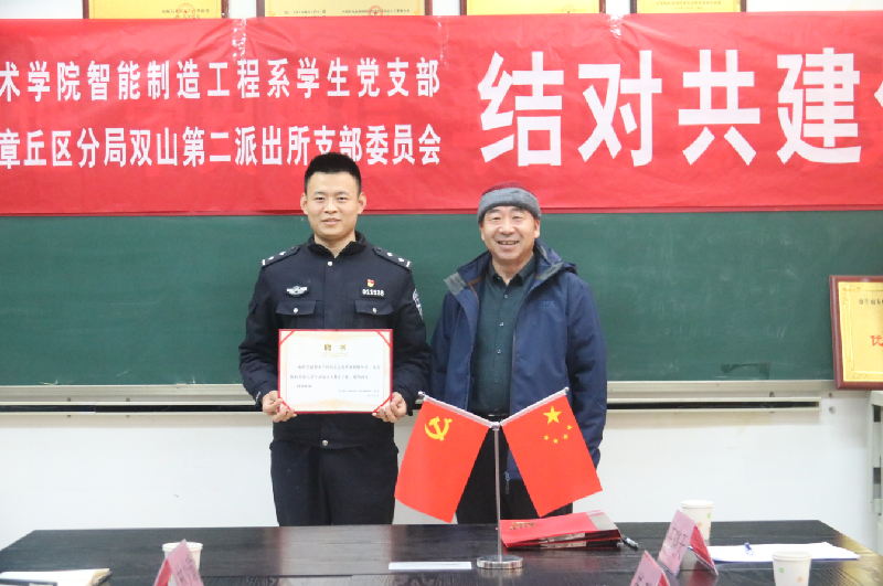 12月3日,智能制造工程系与双山第二派出所建立支部结对共建关系,共建仪式于下午1:40在办公图书楼201室举行。