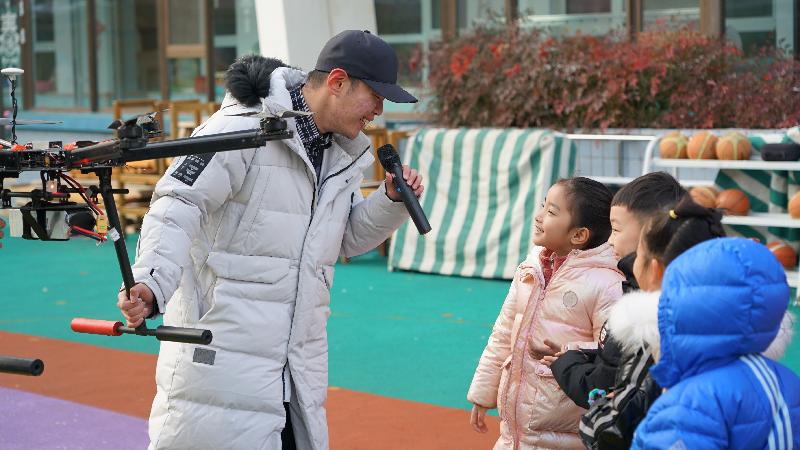 仪式后,我校无人机应用技术专业老师为幼儿园孩子们奉上了一堂别开生面的“无人机飞行”现场公开课,讲解无人机相关知识,并进行现场飞行操作演示,同孩子们五花八门的奇思妙想进行互动,大大激发了孩子们对无人机及应用技术的好奇心和浓厚的探究兴趣,同时也为孩子们打开了一扇通往科技世界的大门。