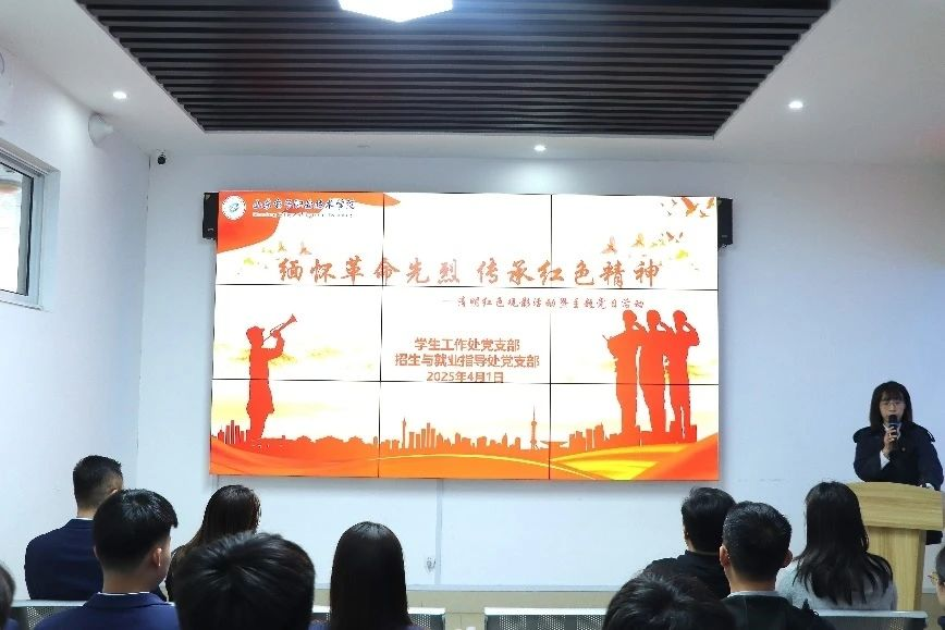 今年是中国人民抗日战争暨世界反法西斯战争胜利80周年,近日,在清明节到来之际,学生工作处党支部、招生与就业指导处党支部在学生服务大厅联合开展清明红色观影主题党日活动。学生工作处党支部、招生与就业指导处党支部全体党员及30余名学生代表参加活动。