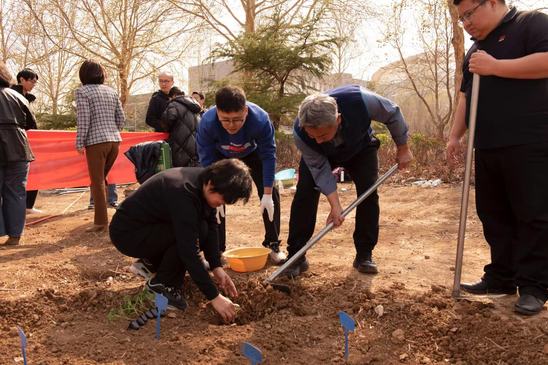 在“党总支种植区”,系主任刘学、党总支书记王红共同为希望田种下第一批幼苗。随后,全体教师分组领取农具与种苗,正式开启春耕实践。活动现场热火朝天,教师们或挥锹翻土、或栽种幼苗、或浇水施肥,分工协作默契高效。在共同耕耘的“希望田”里,老师们以躬身实践诠释立德树人的初心,用汗水浇灌教育的沃土!