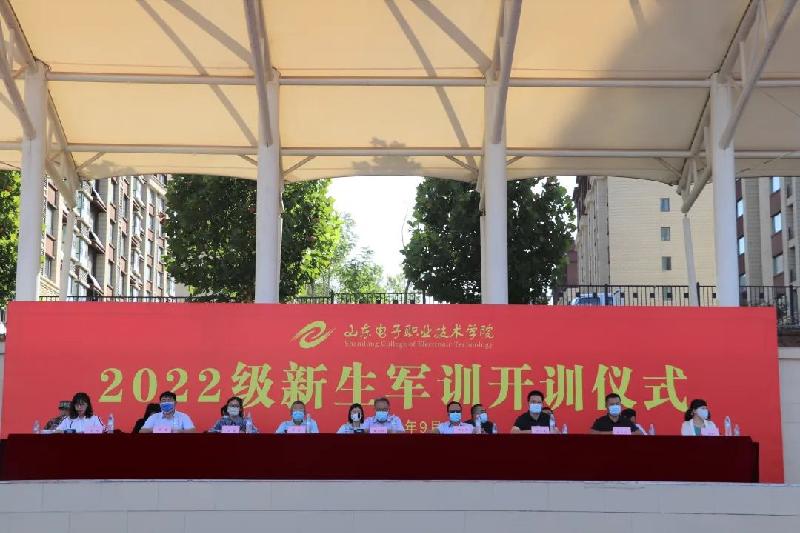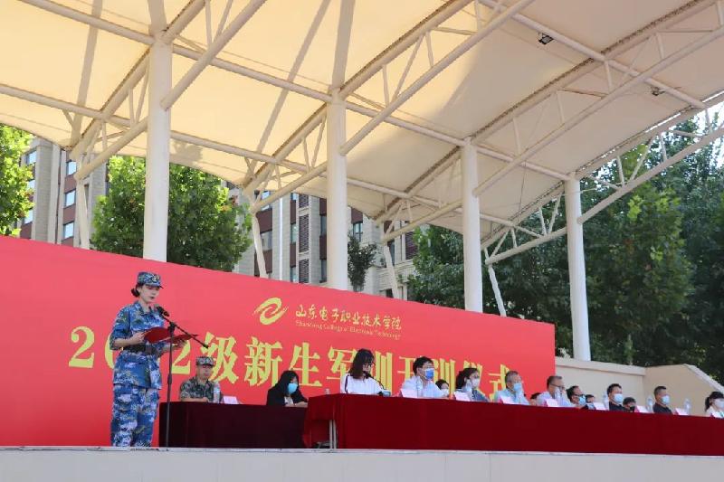 少年负壮志,奋烈自有时。9月19日上午,山东电子职业技术学院举行2022级新生军训开营仪式。学生工作处、团委相关人员、各系党团总支书记出席本次开营仪式,参加本次开营仪式的还有各系新生辅导员、各营连教官和2022级全体在校新生。开营仪式由学生工作处副处长王佩主持。