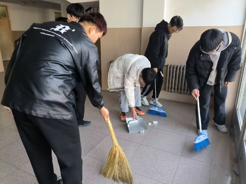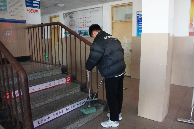 2月23日,学生公寓开展了公寓服务日活动。活动当天,学生公寓服务中心的同学们对一号、四号公寓楼大厅进行了志愿清扫劳动。