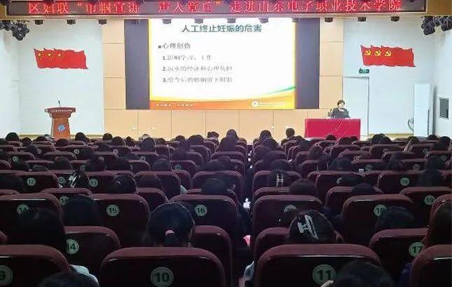 为深入学习贯彻党的二十大精神,提升女大学生的生殖健康和自我保护意识和能力,4月25日下午,我校联合章丘区妇女联合会、章丘大学园区管理服务中心在学术报告厅共同开展“巾帼宣讲 声入章丘”公益讲座活动。章丘区妇幼保健院副院长、主任医师黄艳,山东凌岳律师事务所主任商苗苗律师分别进行讲授。我校辅导员和女大学生等340余人参加讲座。