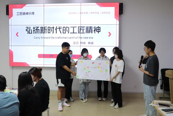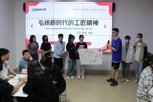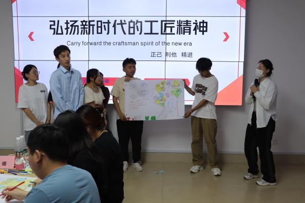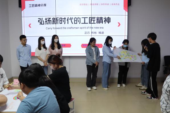 14日培训专题为《弘扬新时代的工匠精神》,从四个方面阐述了工匠精神的内涵、意义,如何弘扬新时代的工匠精神,以及个人如何培养工匠精神。培训中,通过分组合作的形式,每个队伍建立确定了自己的队名队形,同学们积极参与互动,配合老师的问题深入思考、踊跃作答,在游戏中增强了团队合作的默契,培养了同学们的沟通能力和团队意识,深刻了解工匠精神的涵义。