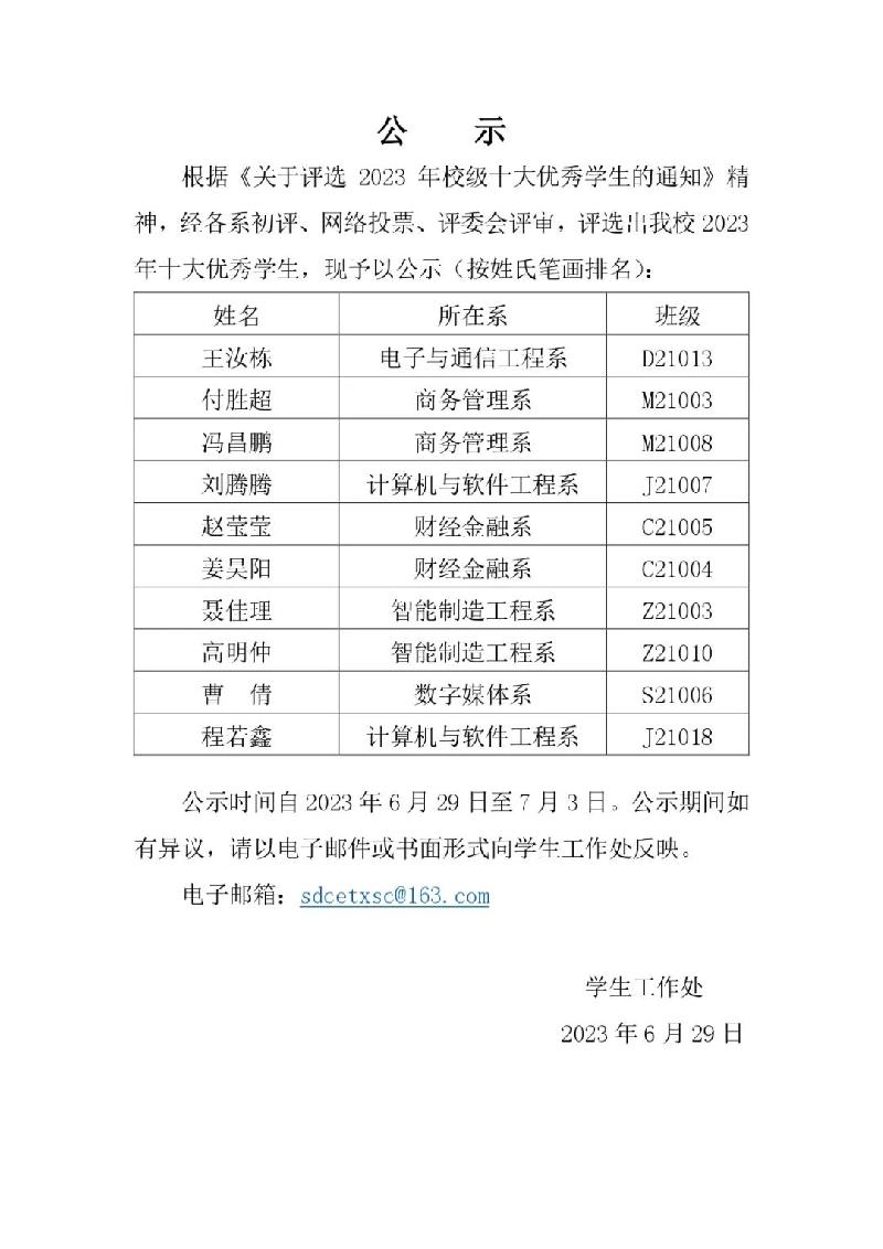 2023年校级十大优秀学生公示