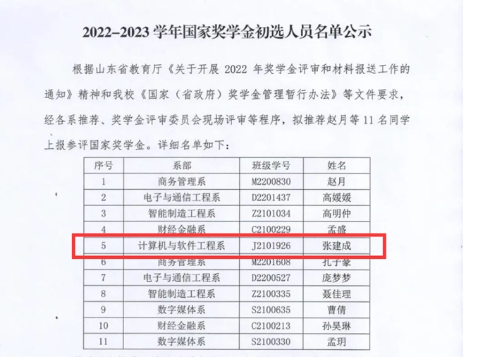 商务管理系赵月等11位同学拟作为2022-2023学年国家奖学金初选人员推荐。