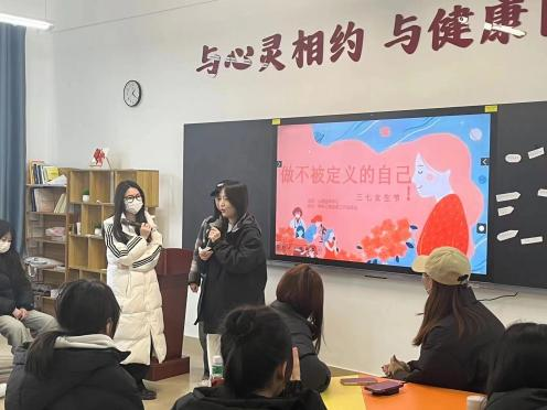 为丰富女大学生的校园生活,营造积极向上的校园文化氛围,引导广大女生关注自身的道德修养、文化内涵、气质仪表和心理健康,展现我校广大女生昂扬向上的精神面貌,37日下午,由心理咨询中心主办,学生心理健康工作服务站承办的以“不被定义的自己”为主题的心理活动在团体辅导室开展。