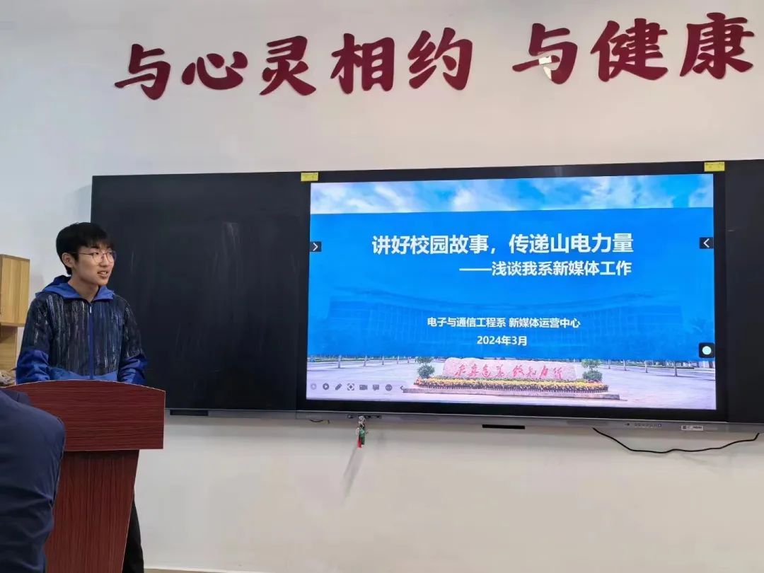 电子系新媒体中心负责人杨正宇同学从“育”“质”“引”“新”四个角度,管理体系,内容创新,图片修饰,职能分工四个方面分享他在新媒体工作中总结的经验,内容精彩丰富,让大家受益匪浅。最后,各部门同学就新媒体运营工作展开热烈讨论交流,大家就如何做好新媒体工作有了更深的认识。