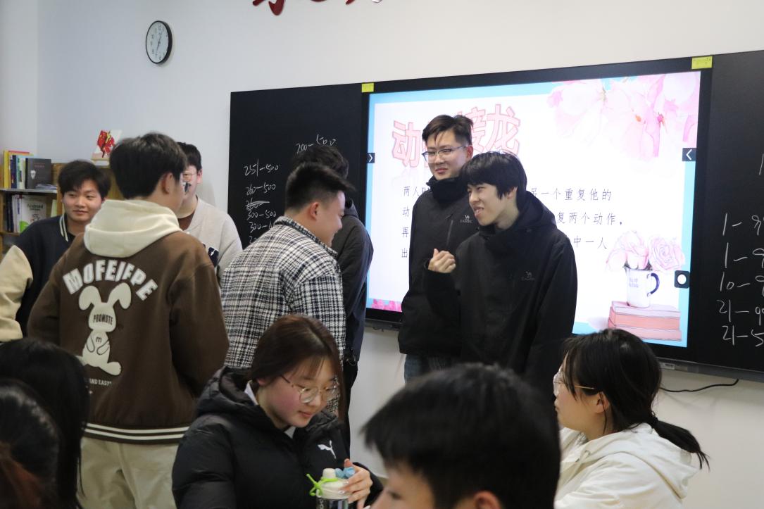 第四个环节——“动作接龙”,一个人先做动作,另一个重复他的动作,并加上新的动作,重复如此,训练个人的灵敏度和团队合作精神,放松身心。