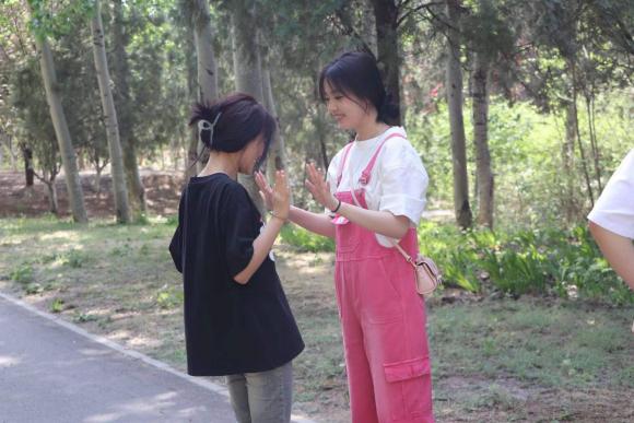 第一个环节——推手游戏,两人伸出胳膊,四掌相对,通过保持平衡时长获得胜利。通过这个游戏,提高了同学们身体协调能力,帮助同学们感受关系的冲突和压力,并学会如何处理这种冲突。