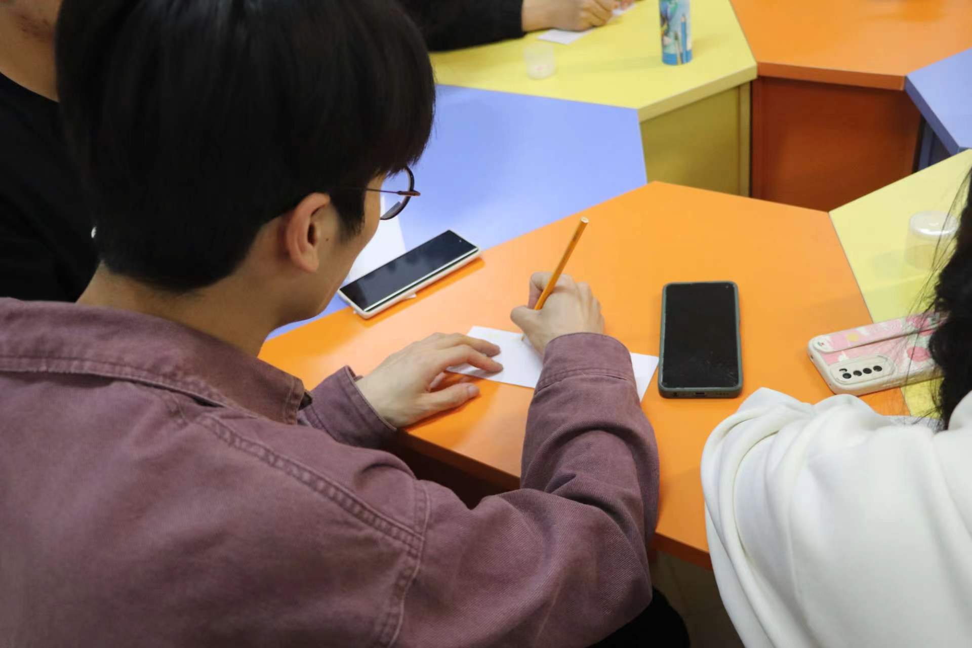 第三个活动——猜猜我是谁。同学们在纸条上写下五条我是一个xx样的人,由主持人打乱顺序,随机抽取依次读出,同学们根据纸条上的描述猜出是谁。用书写的方式描绘出自己的特点,增加了同学之间互相了解,培养了同学们的观察能力和文字表达能力。