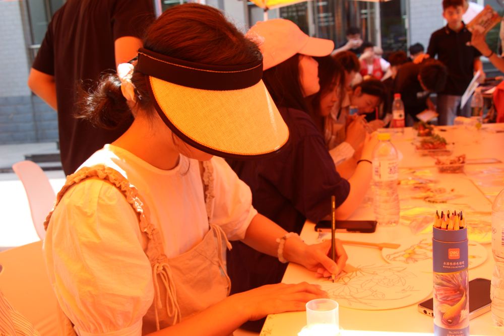 DIY团扇:在扇面上描绘出图案的轮廓,然后进行上色和绘画,帮助同学们缓解焦虑和压力,促进身心健康。
