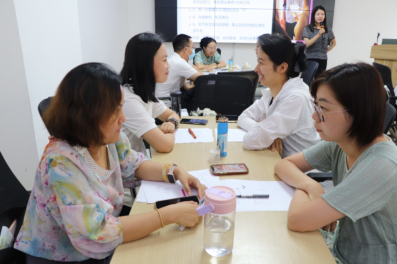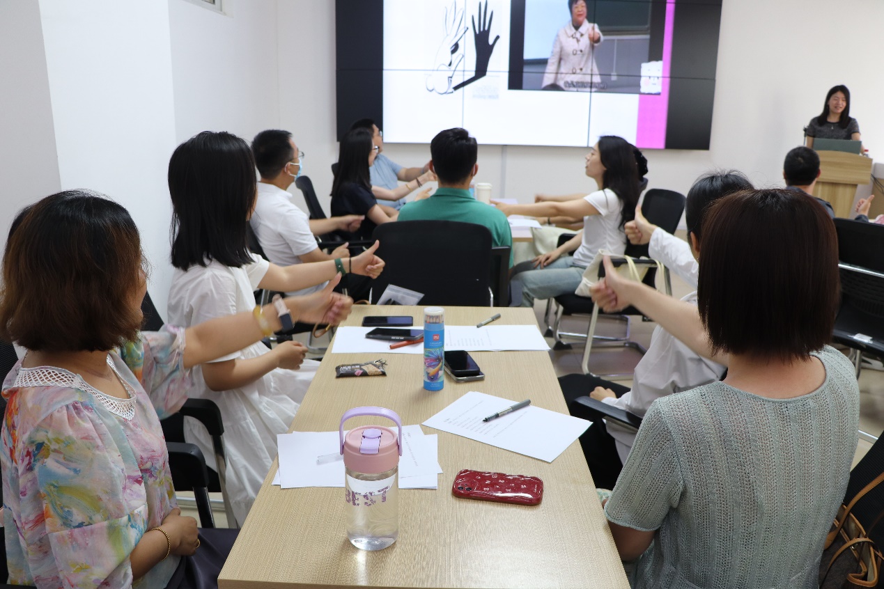 接着是“提高交往、学会沟通”主题团体心理辅导,刘老师带领大家练习“学会拒绝、脑力激荡”等内容,引导辅导员掌握沟通的艺术,提高人际、工作和生活满意度。