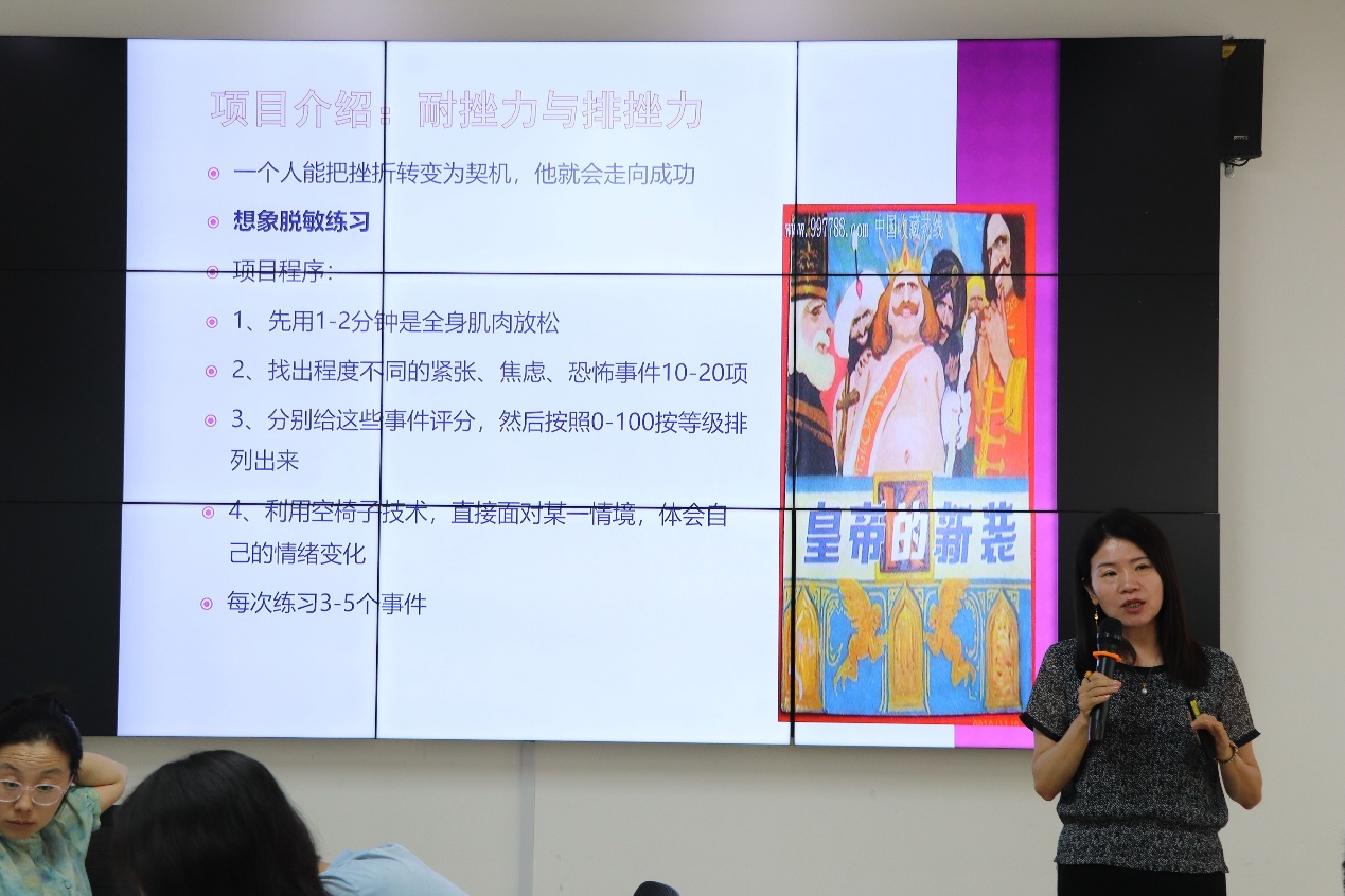 最后是“耐挫力与排挫力提升”主题团体心理辅导,刘老师带领大家练习“人生曲线、影响力车轮、想象脱敏练习”等内容,引导辅导员挖掘并积极关注自身资源和能量,为身心赋能,增强自信心,培养乐观积极的人生态度。