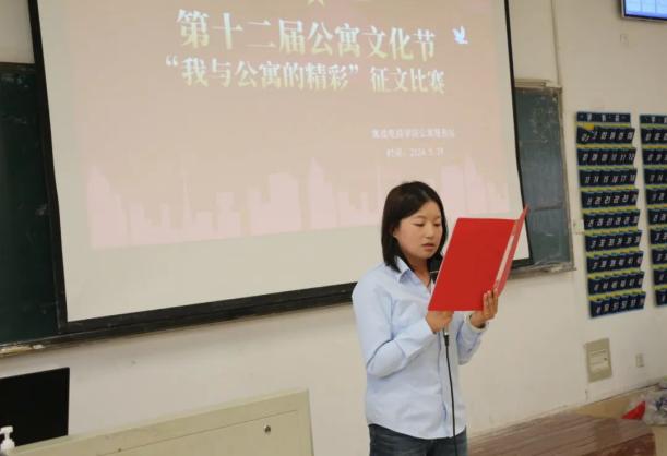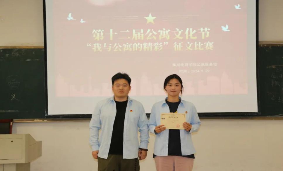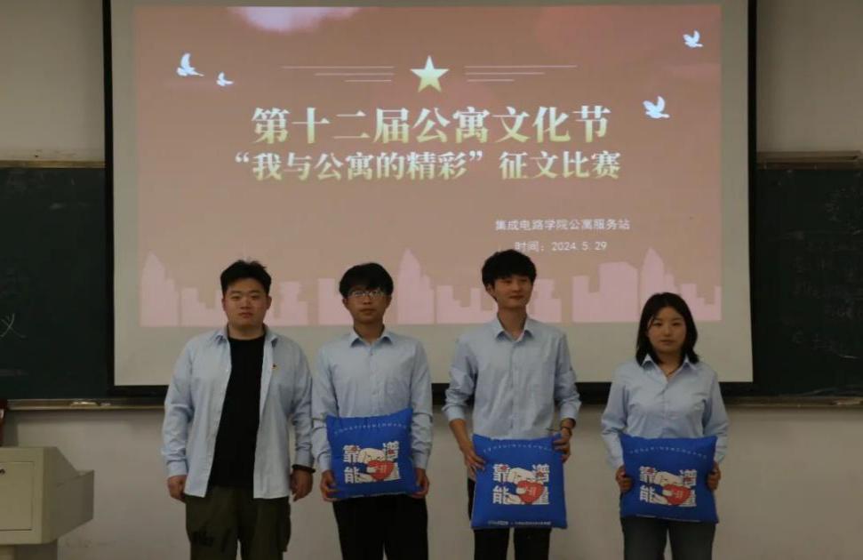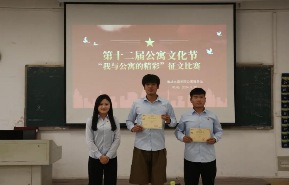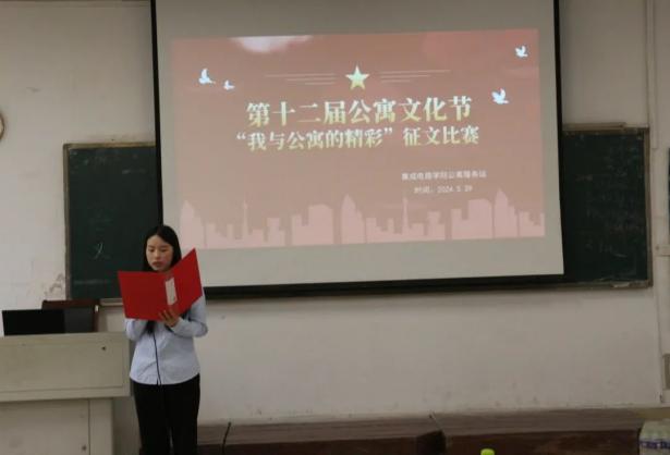 为加强宿舍文化建设,营造和谐融洽的宿舍氛围,创建文明和谐寝室,由学生工作处主办、集成电路学院承办的第十二届公寓文化节活动之“我与公寓的精彩”征文比赛于5月29日下午在阶梯一教室举行。