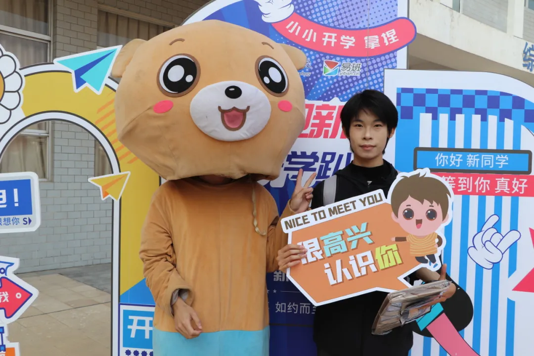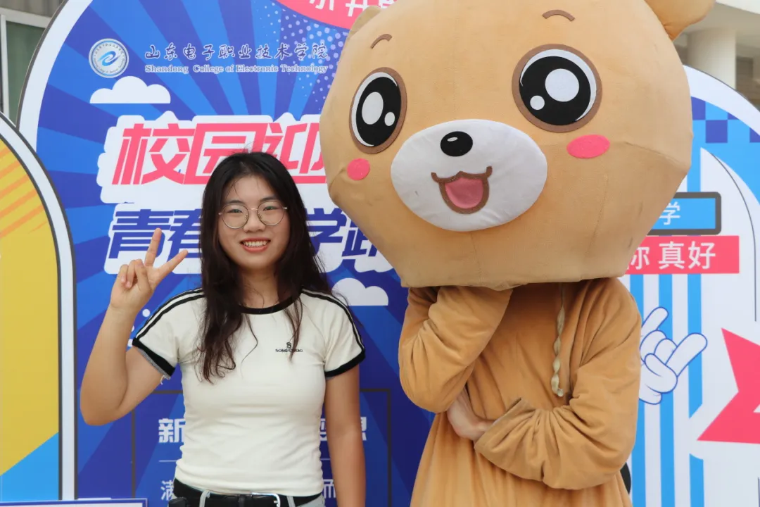 咔嚓咔嚓,与可爱的易班熊合影,留下新生的入学第一照,与山电的美好时光从这里开始。